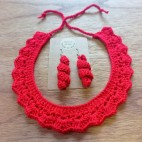 · Precioso conjunto de gargantilla y pendientes hechos a mano a Crochet auténtico
