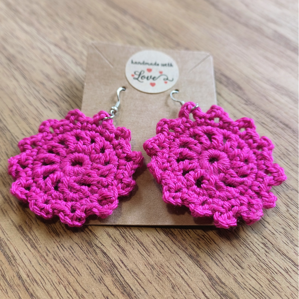 MirtaStitchPendientes Crochet Mandalas Fucsia